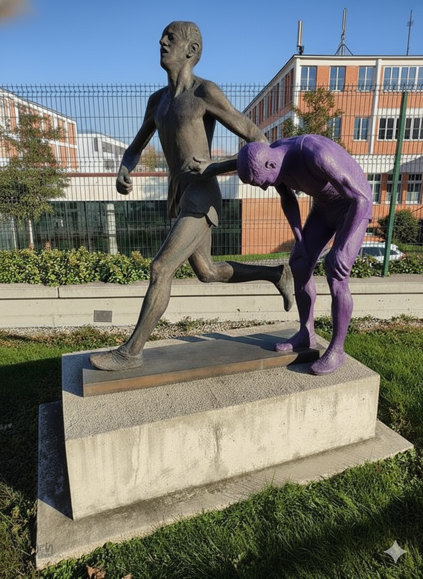Everyone sucks at first, even the greats. We’re going to place plastic purple statues of people struggling to work out next to famous athlete statues.